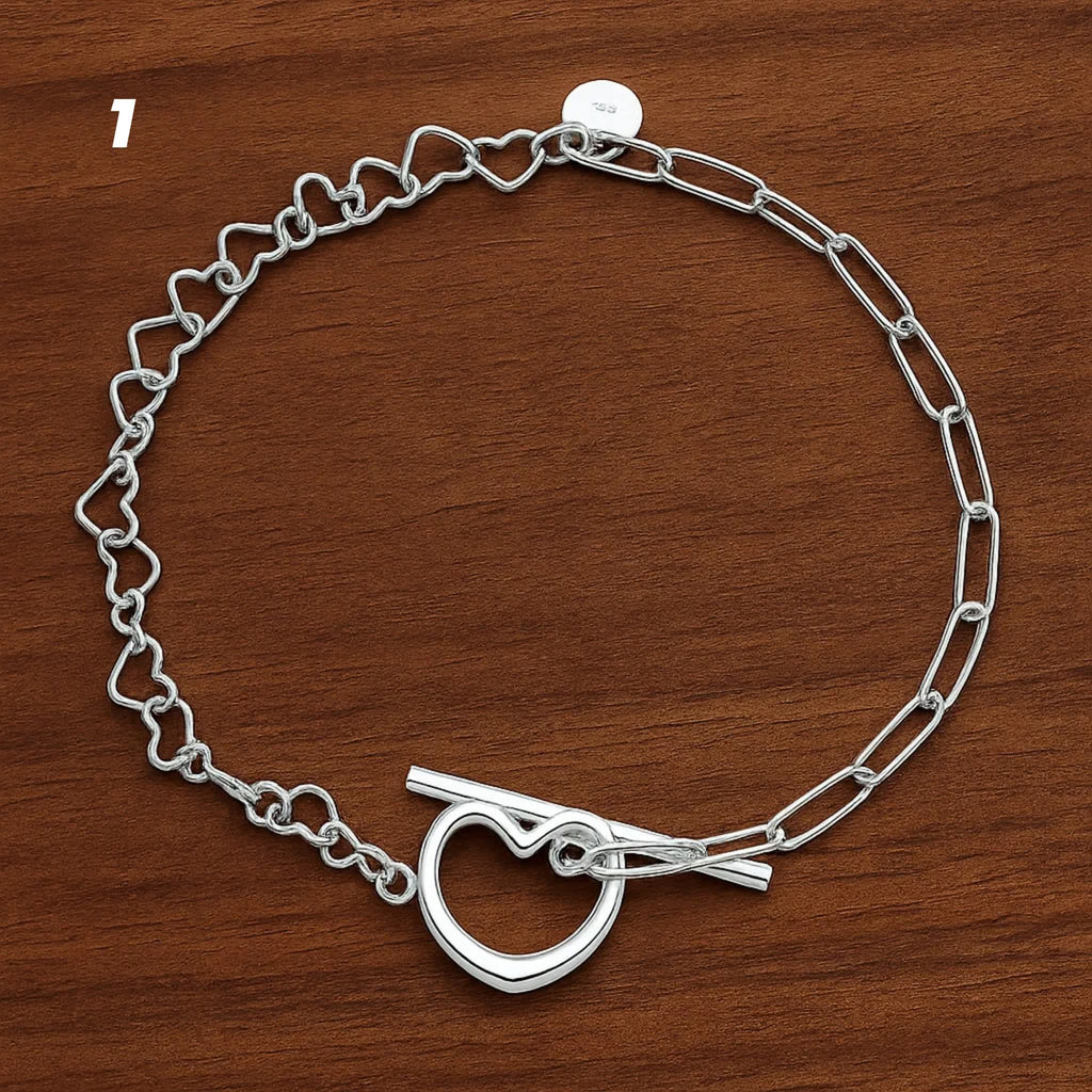 Sterling silver paperclip (2.8mm) and heart (4mm) bracelet 7.5" with heart toggle clasp