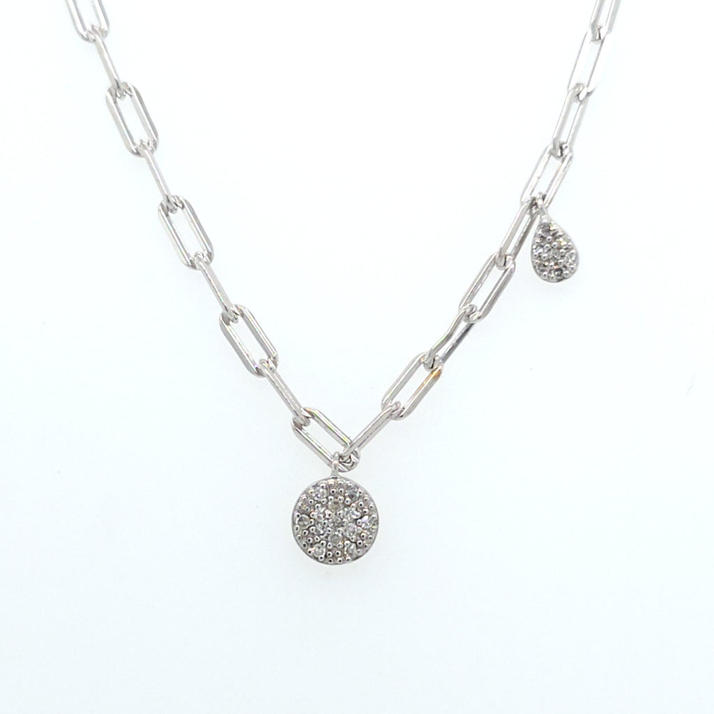 Sterling silver .15ctw natural diamonds in circle and pear shaped cluster pendants on 18" paperclip link style chain