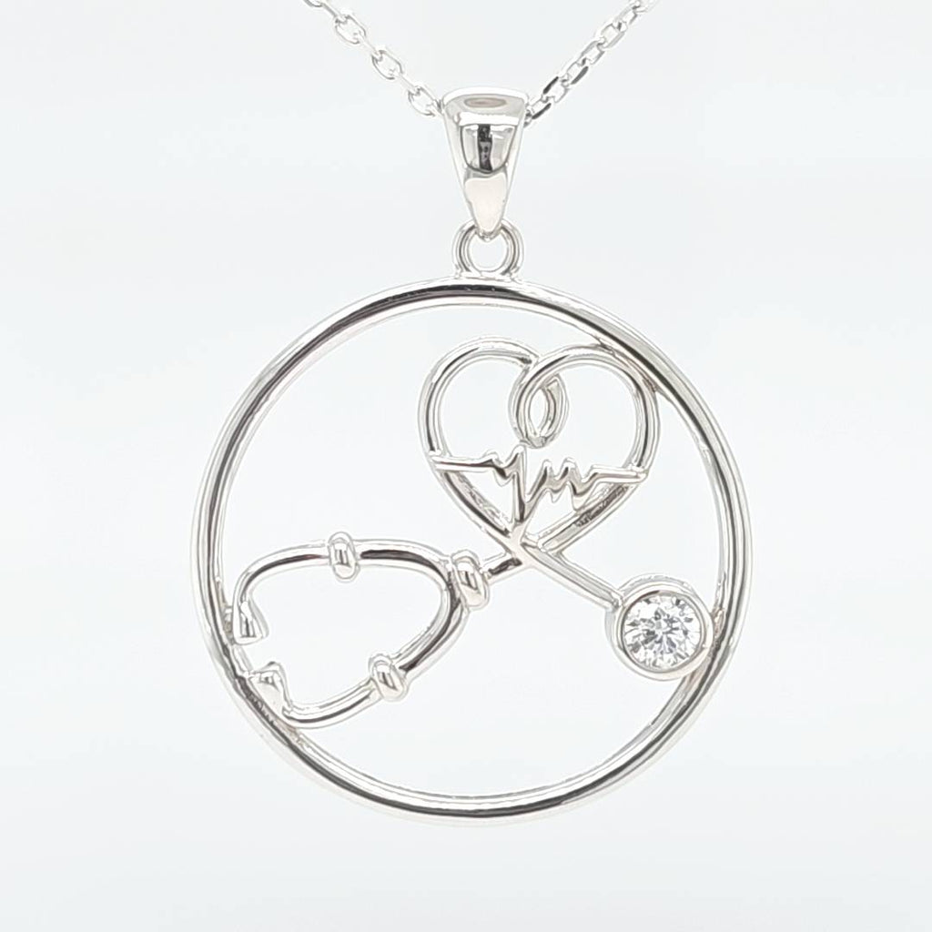 Sterling silver stethoscope heart beat in heart with CZ 18" chain included